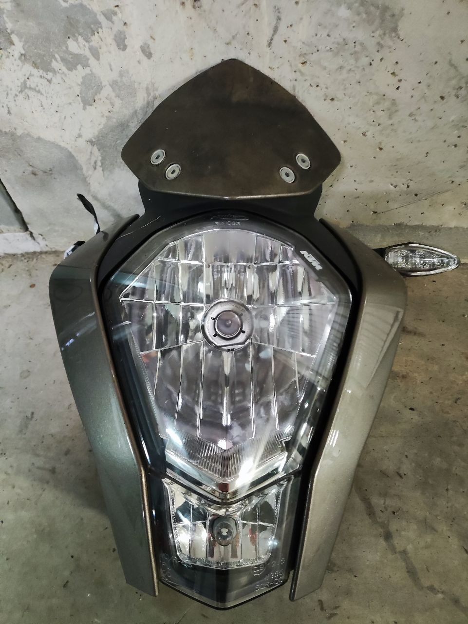 Tête de fourche avec bloc optique et saute vent KTM Duke 125, 200, 390 repeint mais en bon état