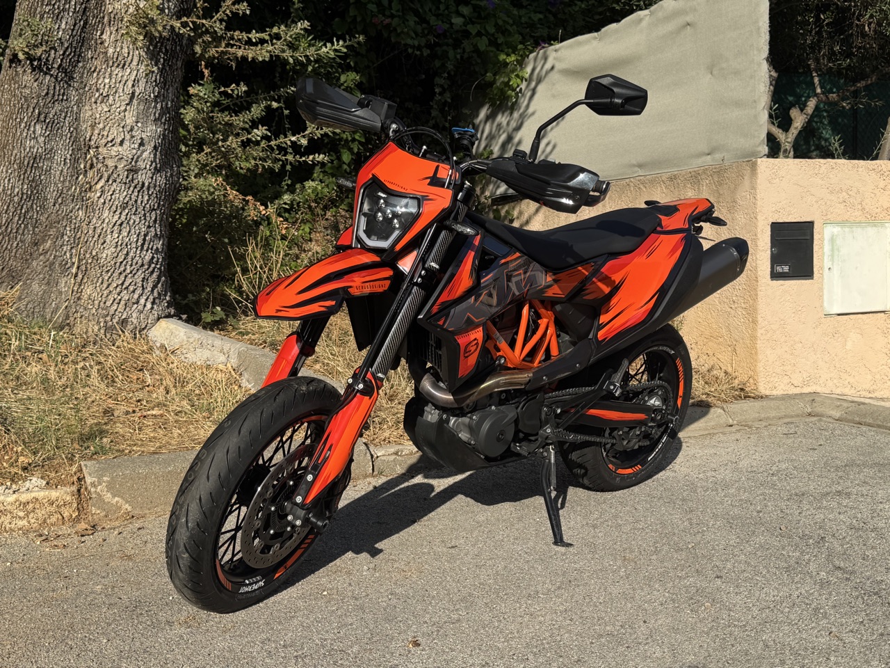 Bonjour, je mets en prévente ma Moto, le kilométrage est peu évolutif ,la révision des 10 000 km a été fait chez KTM Facture à l'appui Les pneus ont été changés récemment Donc pas besoin de prévoir un changement de pneus dans les prochains mois. Elle est équipée d'une ligne Akrapovic Phare changer pour un plus puissant Nombreuses pièces en carbone : tour de clé, tête de fourche, Porte plaque plus court Protège main, kit tampon à l'arrière et à l'avant Plusieurs pièces peint en noir dans un four professionnel(étrier de frein avant arrière, bras arrière de le moto , repose pied, conducteur et passager Avec la Moto, il est fourni différentes pièces d'origine : kit, plastique, complet, ligne d'échappement complet, phare, support de plaque, boîte a air La moto est entretenue avec je donne aussi de quoi graisser et nettoyer la chaîne bridée en A2 (carte grise et la moto ) Une seul défaut j'ai la protection thermique du pot d'échappement qui a perdu de la peinture Moto jamais tomber . je ne suis pas intéressé par des échanges Le prix est négociable dans la limite du raisonnable si vous avez des questions intelligentes n'hésitez pas ! Mots clé : supermot, super motard, ktm smc r sm