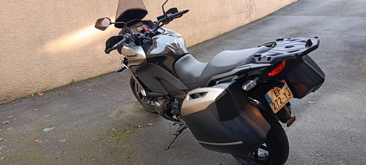 Je mets en vente ma Kawasaki 1000 Versys qui totalise 65000 kms moto acheter sur un coup de tête il y a à peu près un mois chez Kawasaki Tarbes et qui est garantie un an Rien à prévoir sur la moto vendu avec ses valises et son top case contrôle technique à jour absolument rien à prévoir je suis le deuxième propriétaire n'hésitez pas à m'appeler pour de plus amples renseignements Merci TONY
