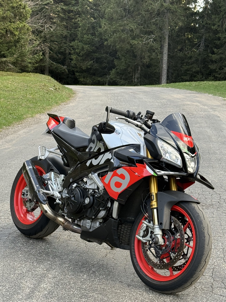 Bonjour Je vends mon Aprilia Tuono V4 Factory de 2018 -Avec 22500 km légèrement évolutifs -2 pneus neufs qui ont moins de 500 km ( mitas sport force EV ) -Ligne échappement complète Cobra Sport 🐍 sonorité exceptionnelle -Protège cadre en carbone - Pièces de carrosserie en carbone - Protèges carters GB racing - disque arrière allégé - Winglet avant - Plaquettes avant ok mais je dispose en + d’un jeu de plaquettes avant neuves CL Brakes Au niveau de l’entretien, il a été fait par mes soins en août 2025 ( vidange moteur + filtres huile + filtre air + niveaux + remplacement liquide de refroidissement) - La grosse révision des 20 000 km avait été faite en concession à 17 000 km ( jeux soupapes, bougies, puits de bougies) facture dispo Une moto exceptionnelle avec son V4 très coupleux Marche très fort Cordialement,