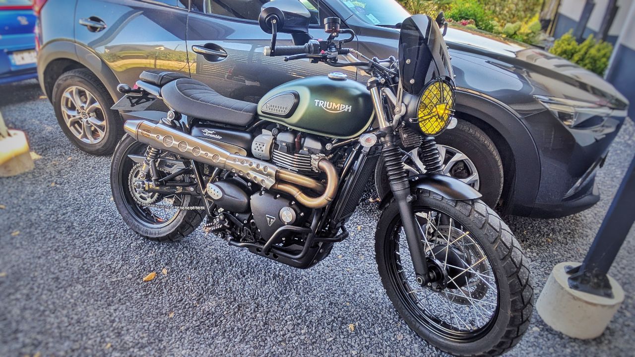 Vend triumph street scrambler 2018 Vert kaki 9300km En excellent état. 2 places ( selle arrière ou porte paquet)