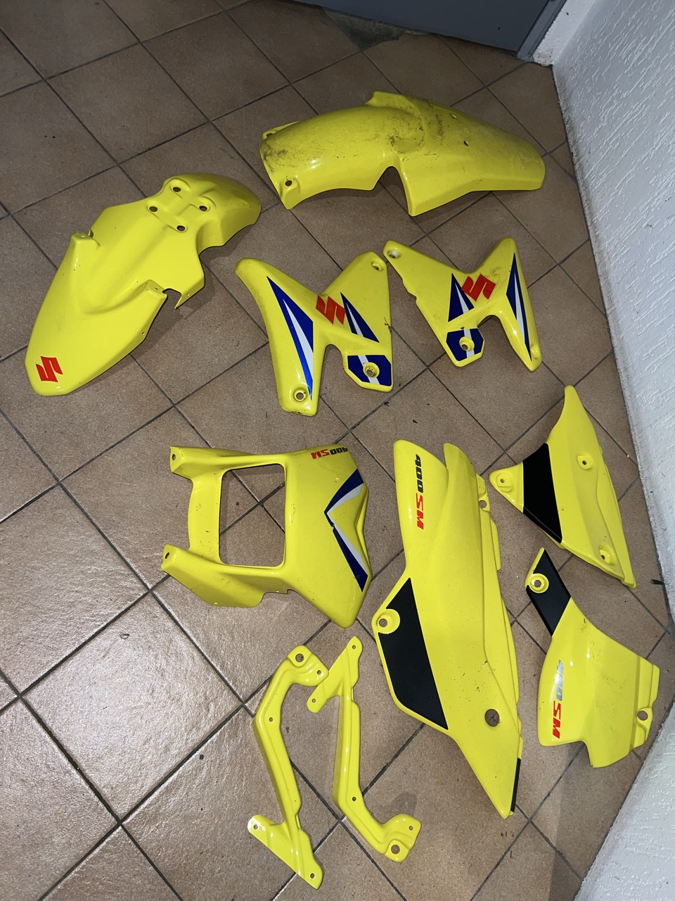 Vend kit plastique carénages d’origine pour SUZUKI 400 DRZ SM
