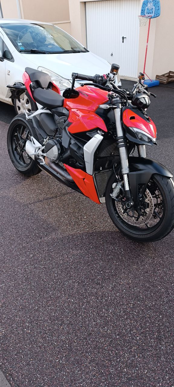 A vendre Ducati street fighter v2 de 2022 D'origine Équipement : coque arrière mono place Rétroviseurs en bout de guidon Pneu avant et arrière changer en mai 2025 Entretien a prévoir ou peux être fait pour la vente 16864km non évolutif